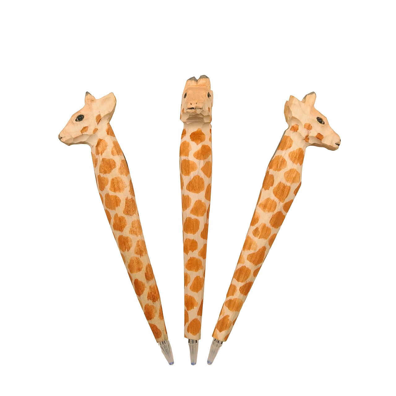 ハンドメイド木彫りアニマルボールペン・キリン