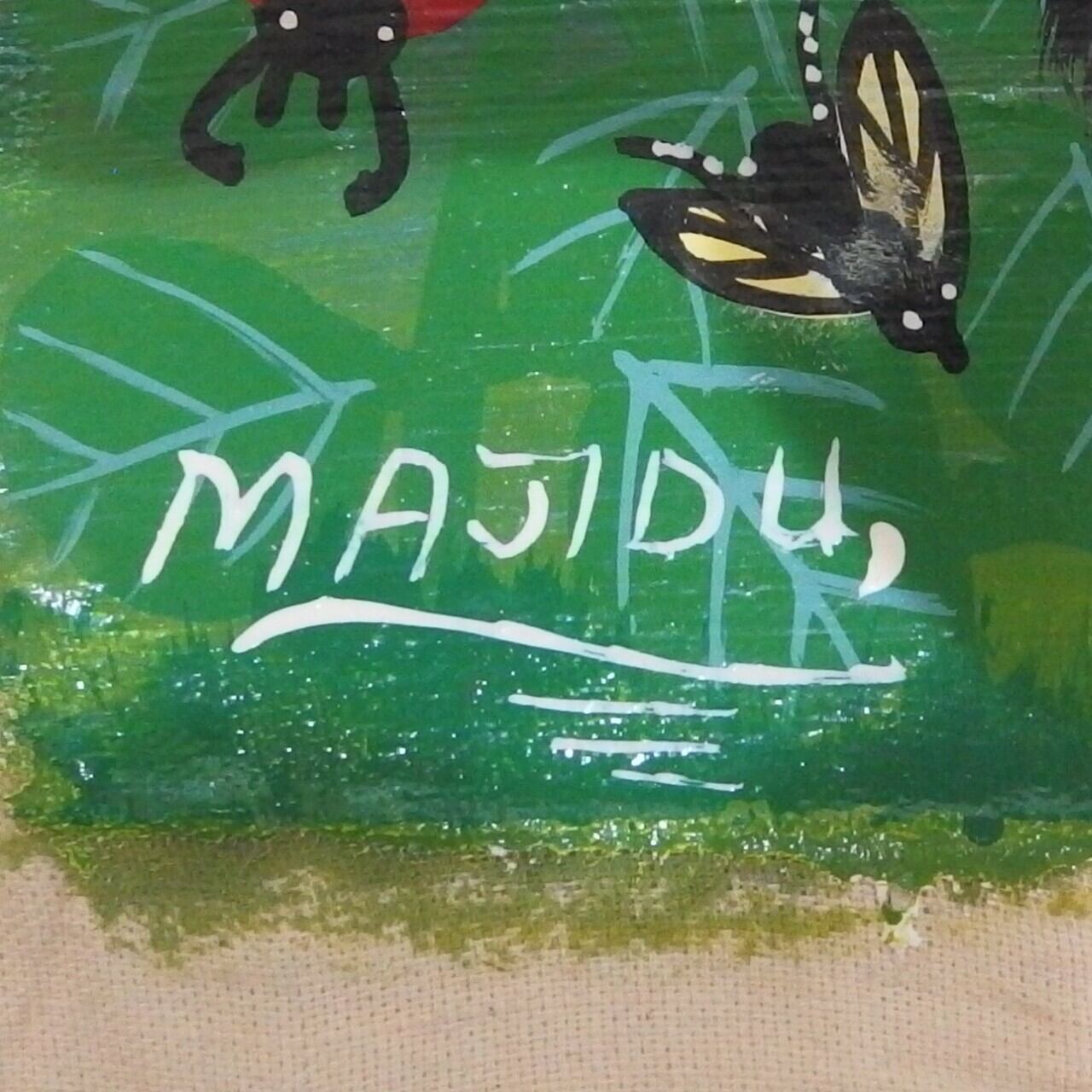 タンザニアのダルエスサラームにティンガティンガ村という工場でティンガティンガ 画家が集まり、色鮮やかな自然の植物、花、山、動物などを中心に描いています。