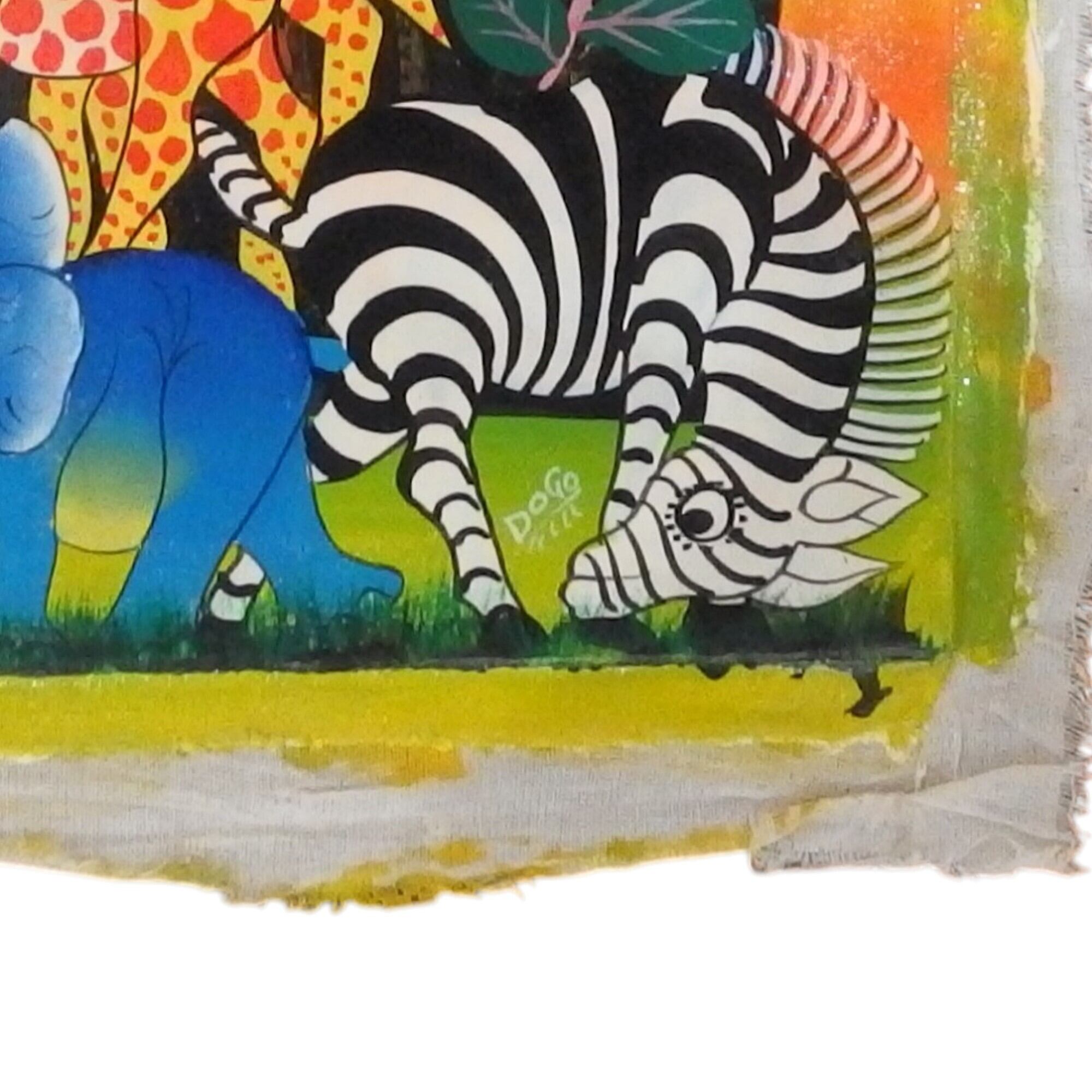 タンザニアのダルエスサラームにティンガティンガ村という工場でティンガティンガ 画家が集まり、色鮮やかな自然の植物、花、山、動物などを中心に描いています。