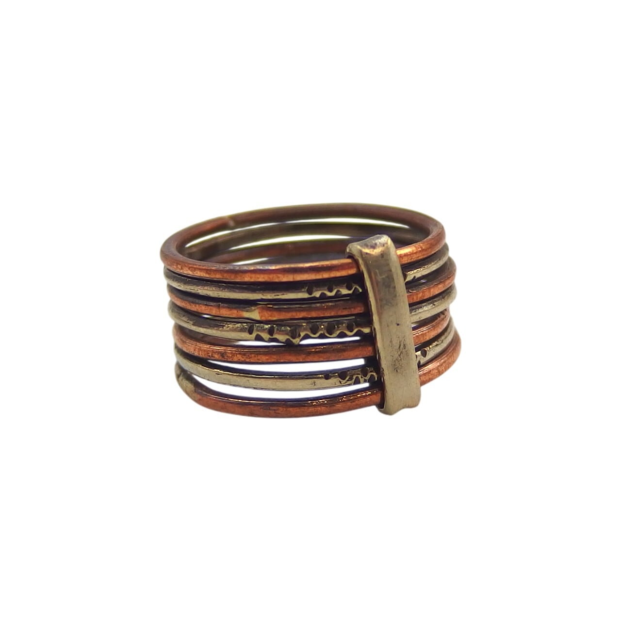ニッケルと銅、二つの金属が織りなす温もりある表情が魅力のリング。