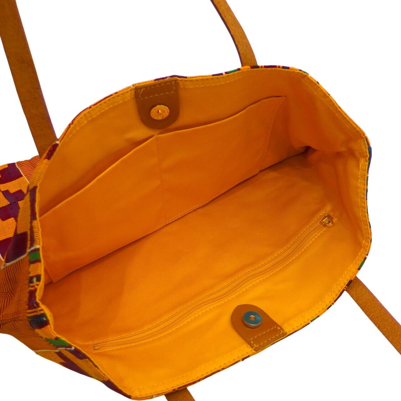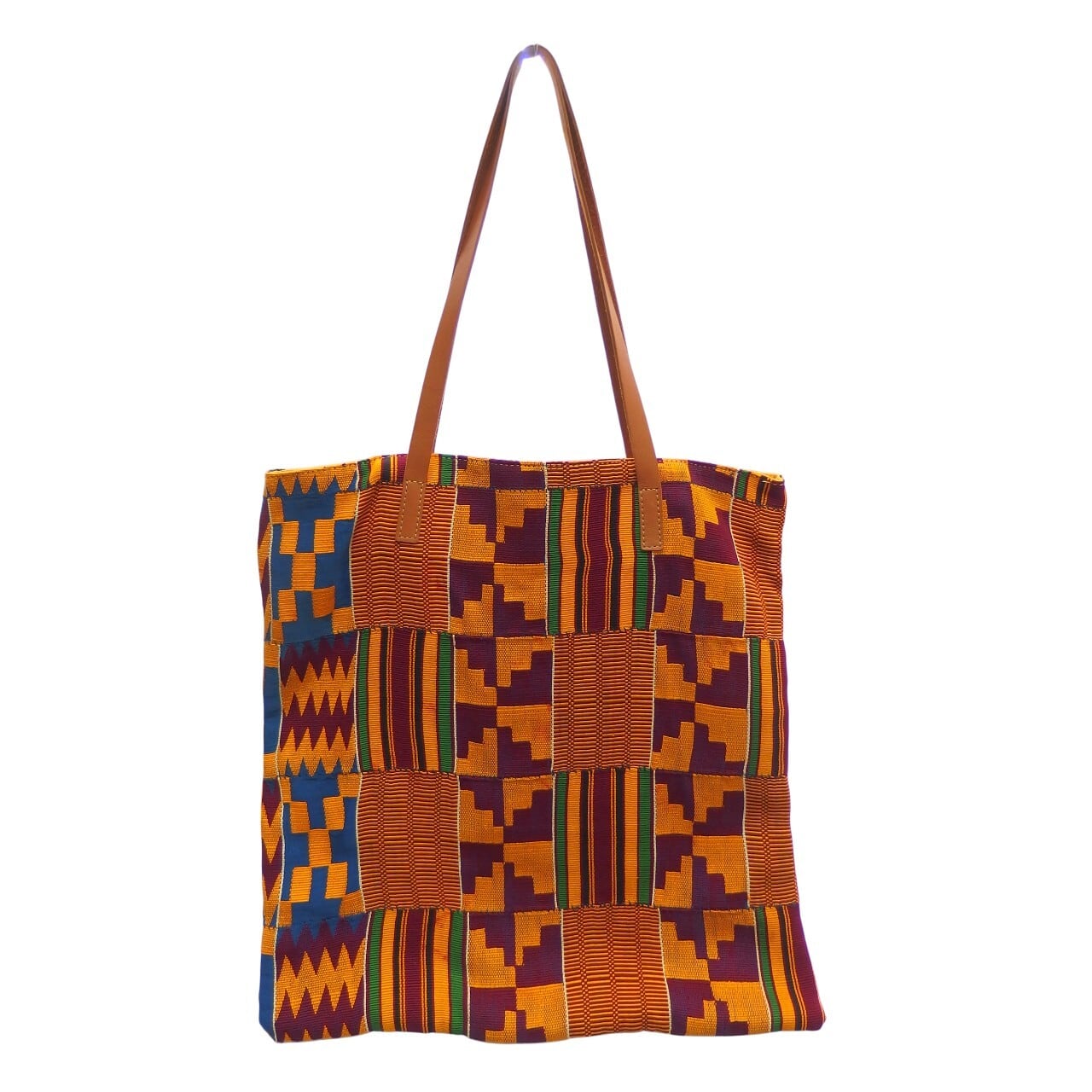 西アフリカ・ガーナに伝わる伝統織物「ケンテクロス」を贅沢に使用したトートバッグ。