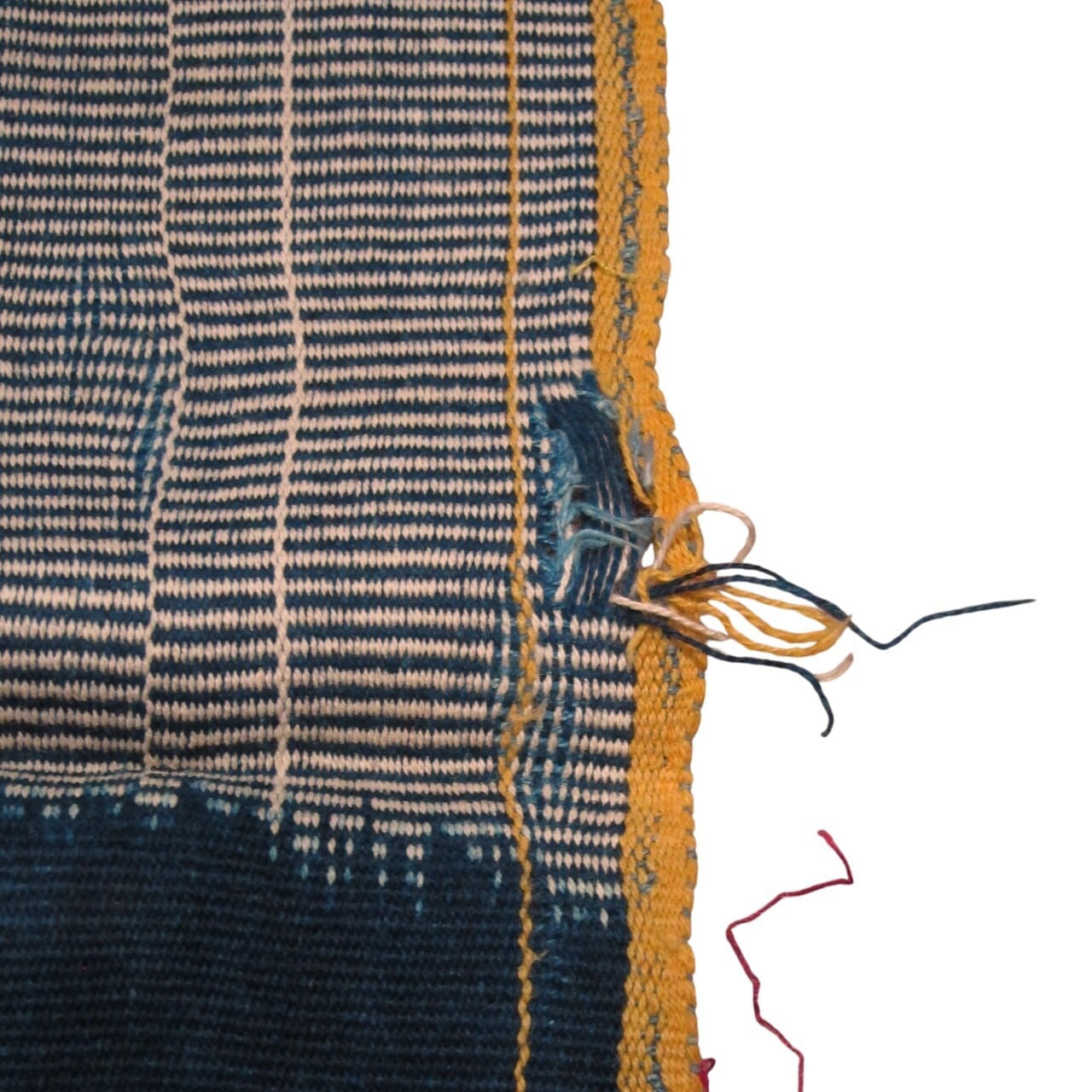 繋ぎ目がアクセントとなったデザインで、無地のモシ布と同じく手作りの風合いが楽しめる一枚。