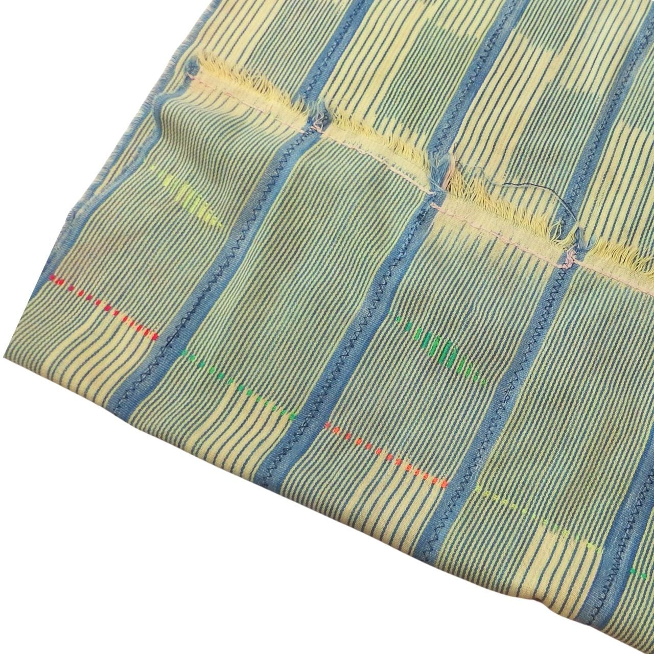 繋ぎ目がアクセントとなったデザインで、無地のモシ布と同じく手作りの風合いが楽しめる一枚。
