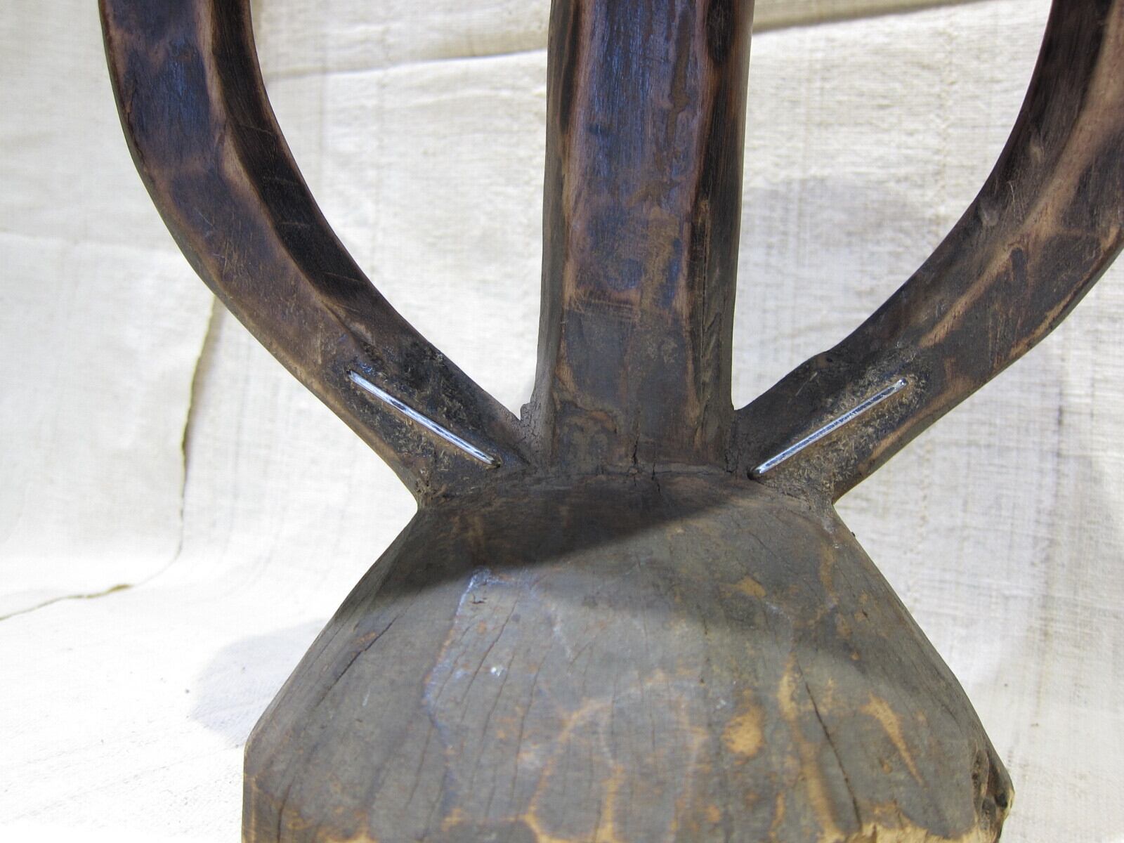スツール下の方にカスガイで修理されています。それはまた魅力の内です。